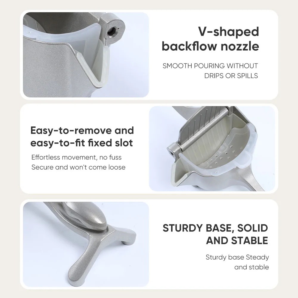 Integrated Seed & Pulp Filter: The deep-seated pressing bowl features a built-in filtration system that captures all seeds and pith, delivering pure, clear juice through the integrated pour spout.