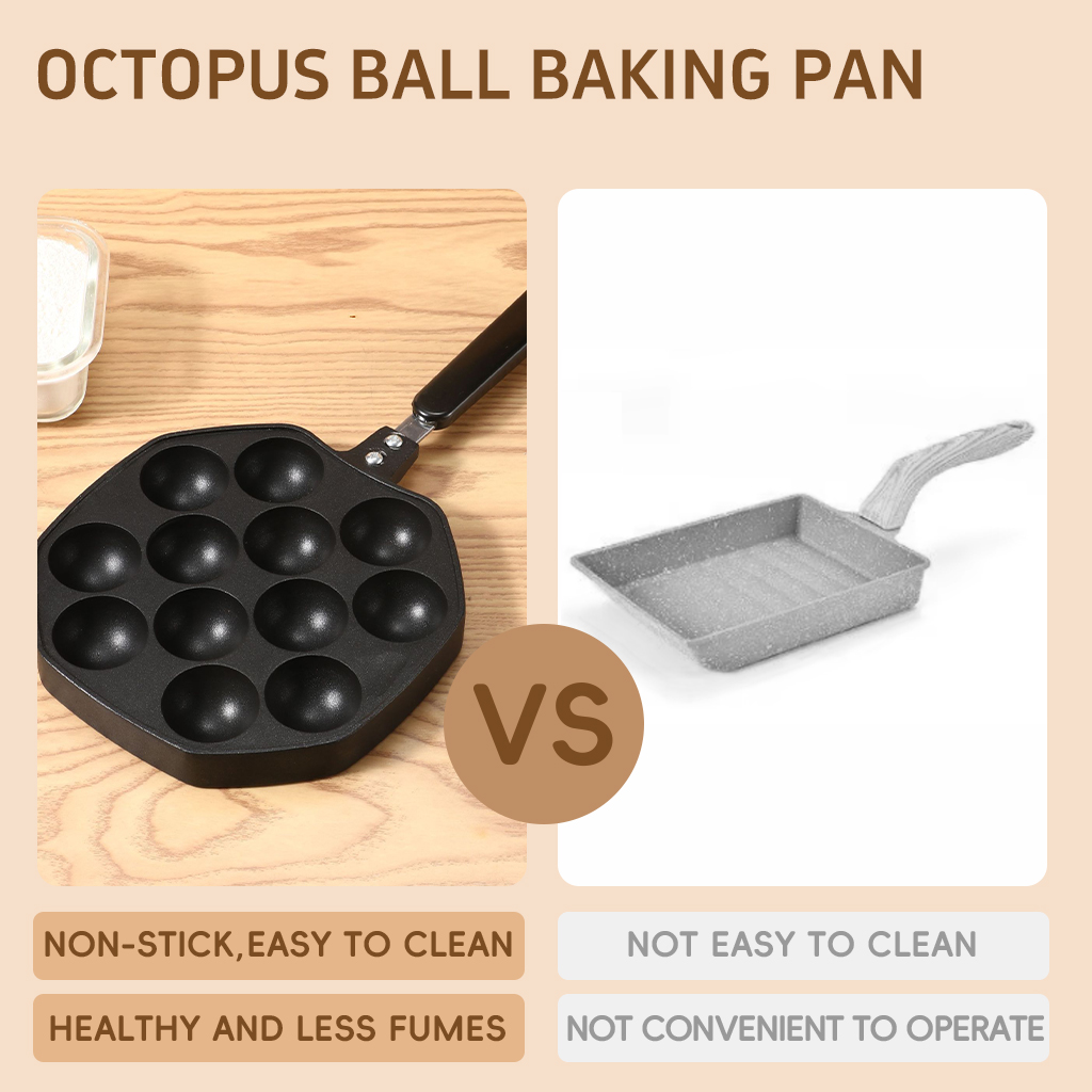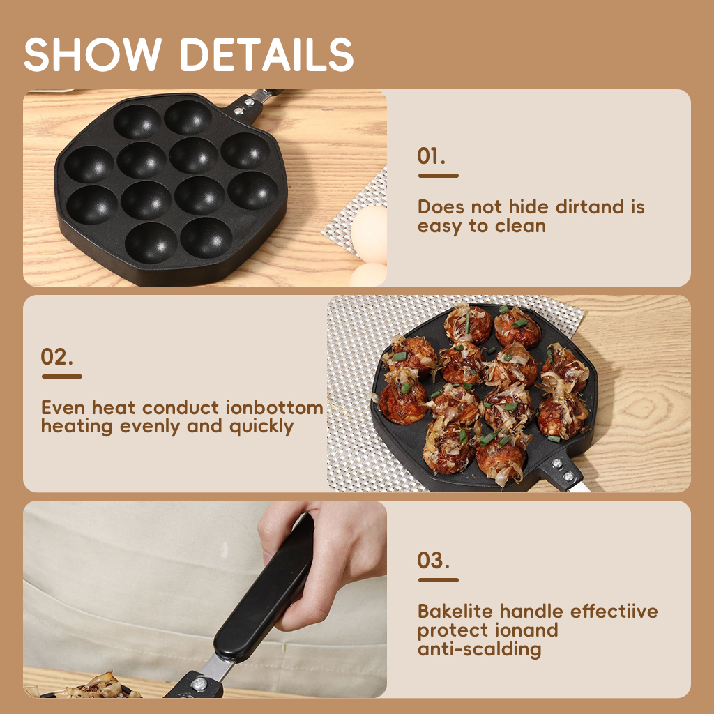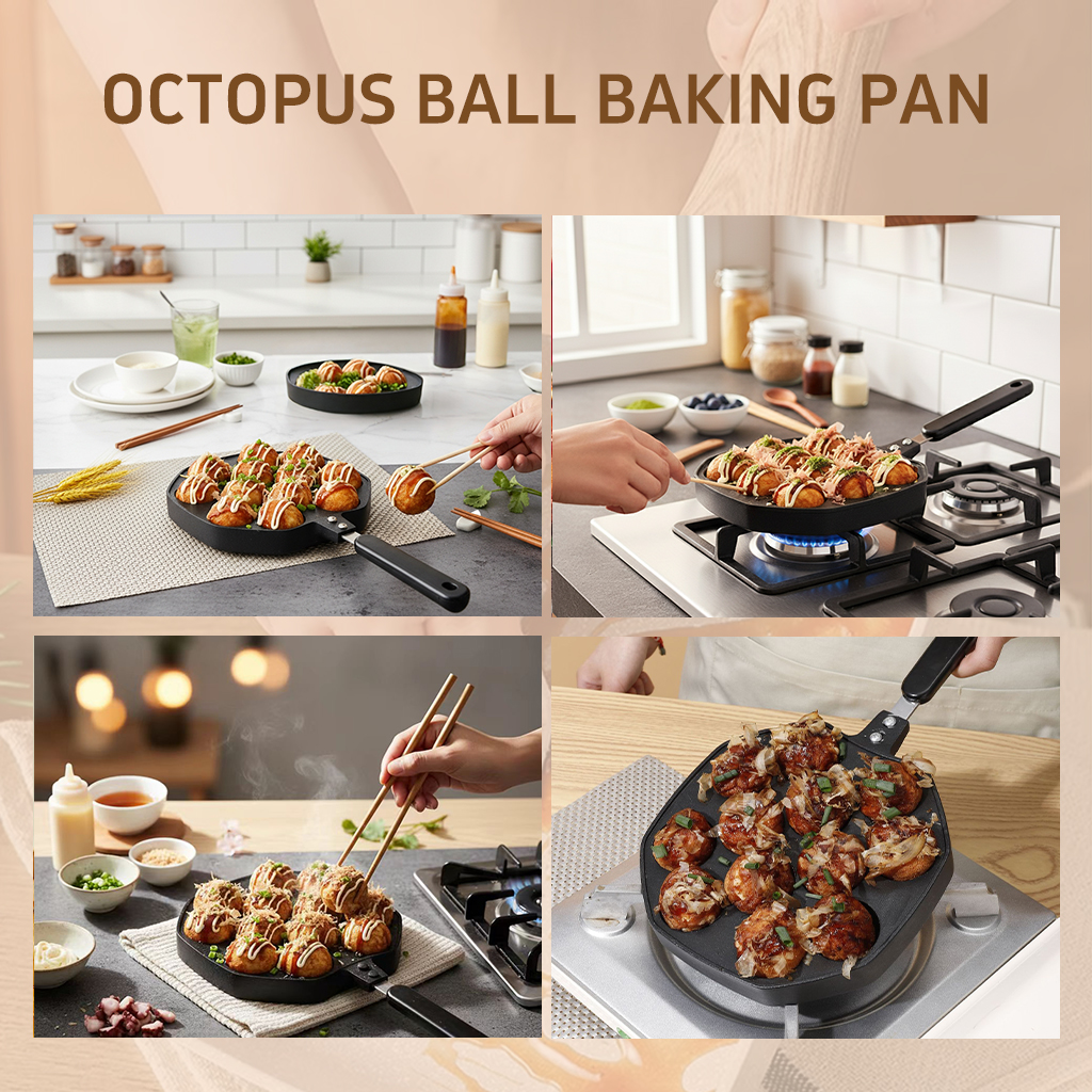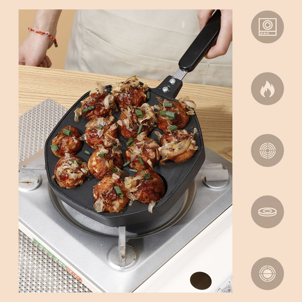 Purpose: Used to make takoyaki, molded and heated evenly